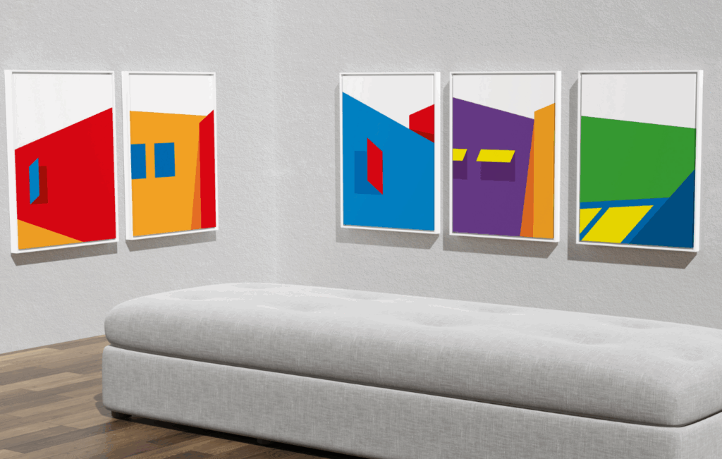 Elk submerk heeft een eigen kleurenpalet, maar vormt visueel een familie. De beeldtaal per submerk refereert subtiel aan abstracte architectuur – via uitsneden, texturen of perspectieven. Nooit letterlijk, nooit clichématig. Waar nodig laten we bewust weg. Herkenbaar in sfeer, uniek in uitvoering.